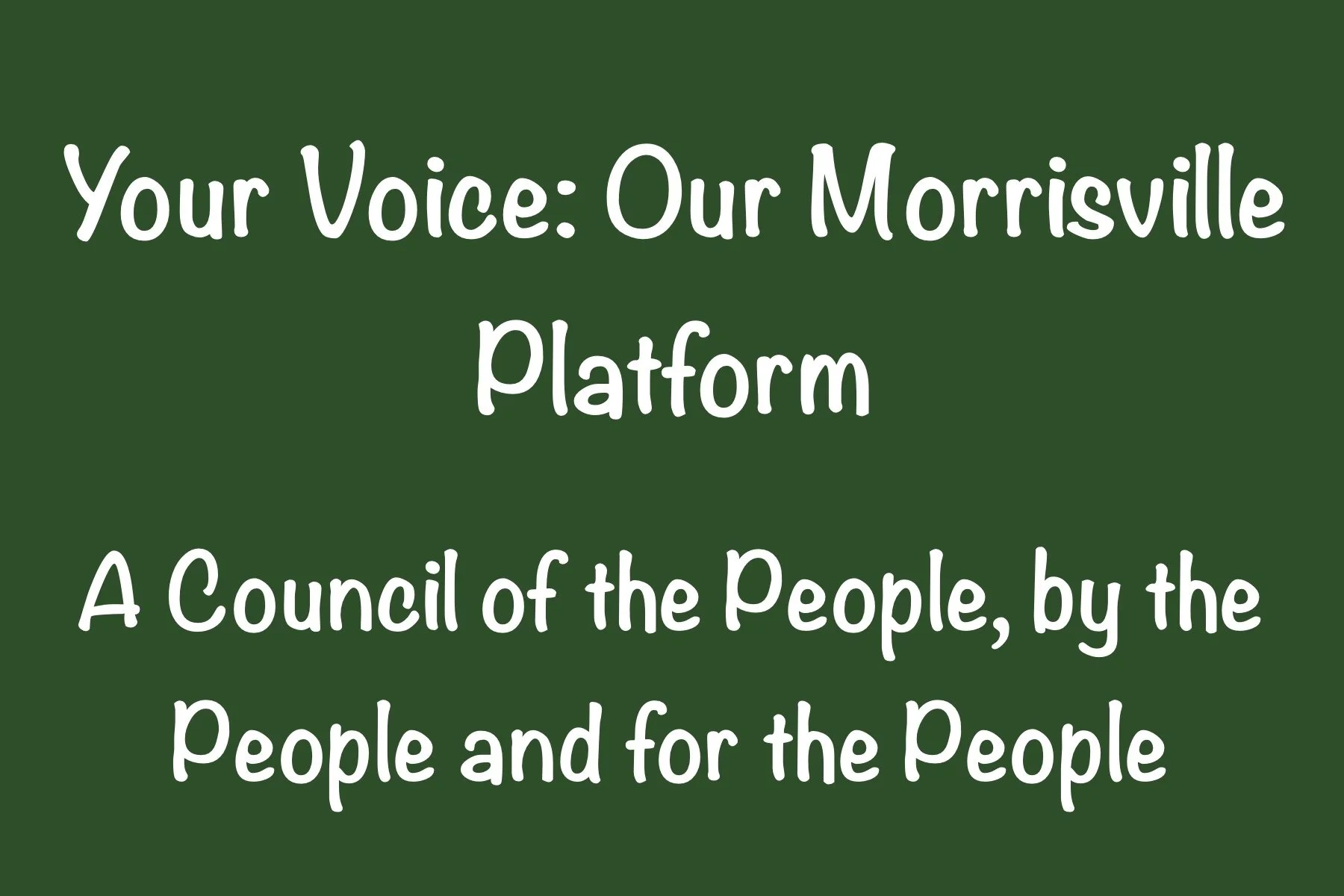 Stay InformedBlog, Podcasts and Alerts Council Candidate Platform Meet Your Morrisville CandidatesYour Voice: Our Morrisville will represent YOU Events Donate LinksLike-minded Friends ContactJoin our email list